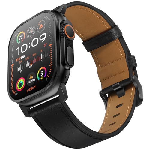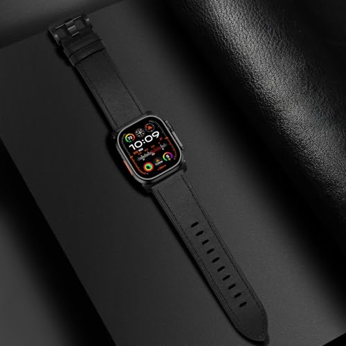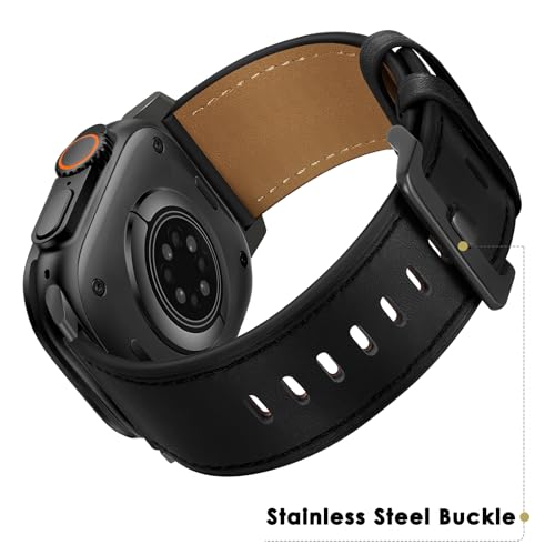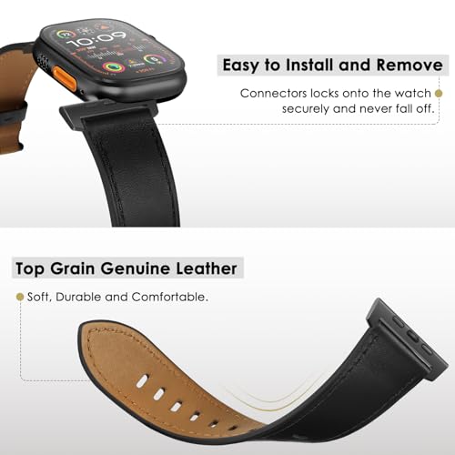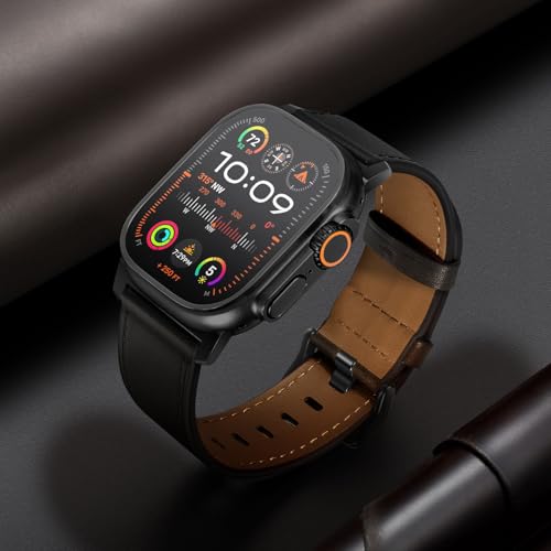 UUPWPOKT - سوار متوافق مع ساعة آبل الترا 2 / الترا 49/46/45/44/42 41/40/38 ملم للرجال والنساء، سوار من الجلد الطبيعي المحبب العلوي لسلسلة اي ووتش الترا 10 9 8 7 6 5 4 3 2 1 اس اي من يو يو بي دبليو بي او كيه تي