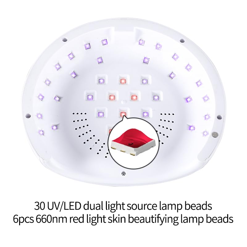 - الطول الموجي الأحمر الفاتح للعناية بالبشرة: يجمع بين العلاج بالضوء الأحمر وتقنية ليد للتجفيف بالأشعة فوق البنفسجية لتعزيز العناية بالبشرة وعلاج الأظافر.