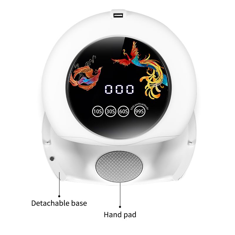 - 128 وات، الطاقة: لمبة عالية الطاقة لتجفيفٍ سريعٍ وفعَّال لطلاء الأظافر الجل مما يقلل من وقت المعالجة بشكلٍ كبير.