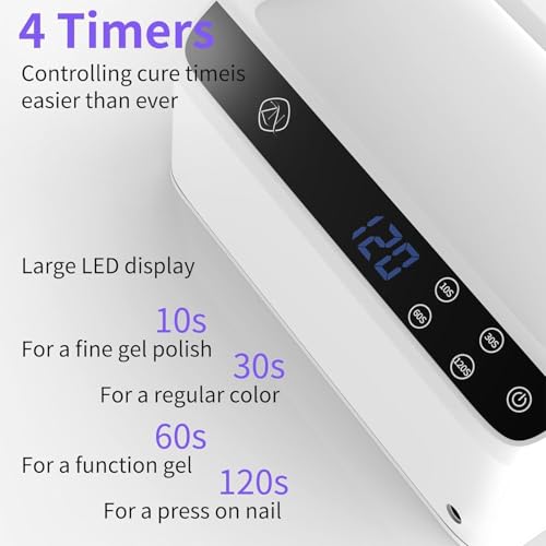 - This gel nail lamp is designed with digital LED touch screen, providing simple and convenient operation and includes 4 timer settings for your choice to meet different gel polish requirements