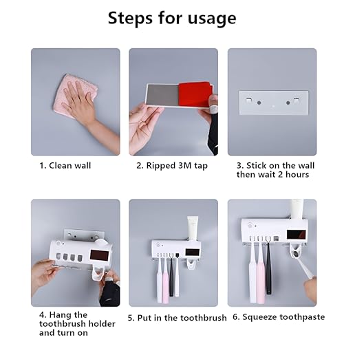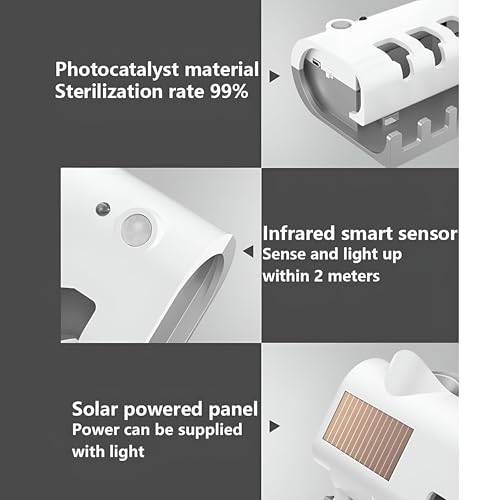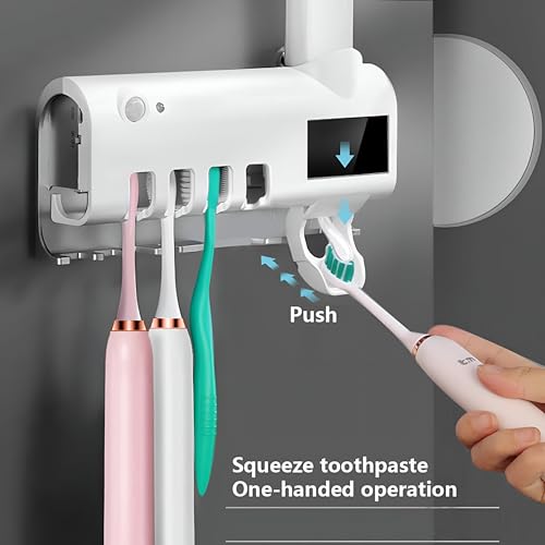 Generic - حامل فرشاة اسنان بالاشعة فوق البنفسجية - معقم يثبت على الحائط يعمل بالطاقة الشمسية مع موزع معجون اسنان اوتوماتيكي، لمسة نهائية بيضاء، تصميم صحي للحمامات العصرية