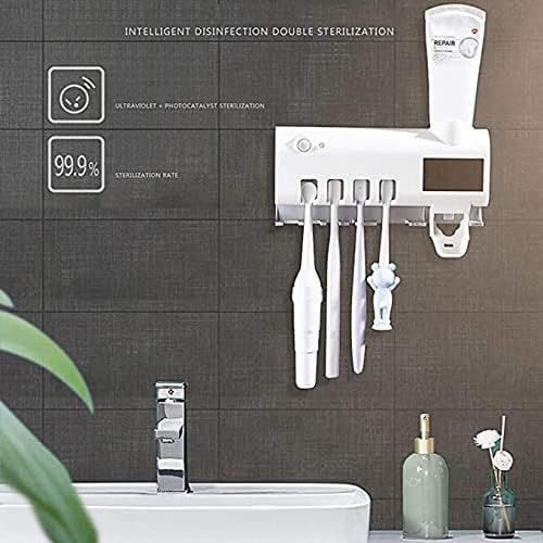 china - Uv Toothbrush Sterilizer Solar Toothbrush Sanitizer Toothbrush Rack Toothbrush Holder Toothbrush Stand Brush Holder With Toothpaste Dispenser Bathroom Organizer Storage Rack White