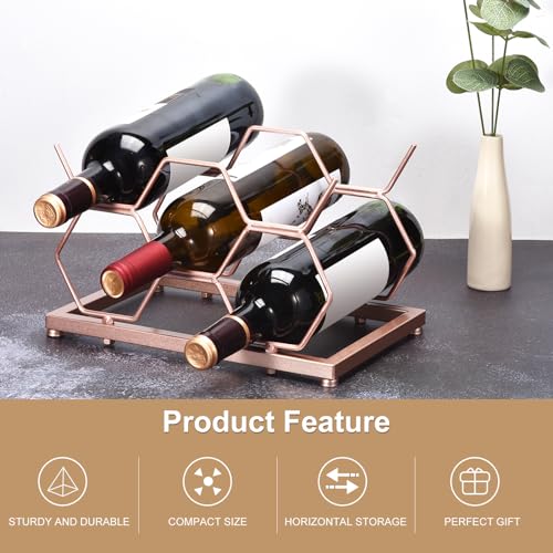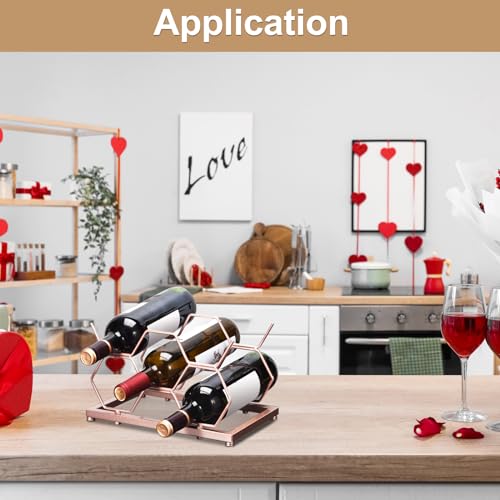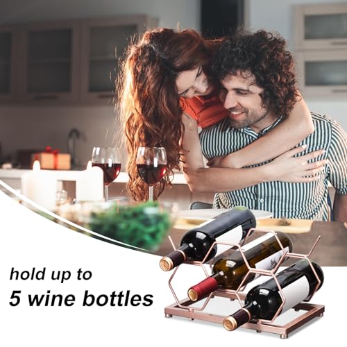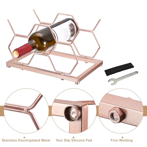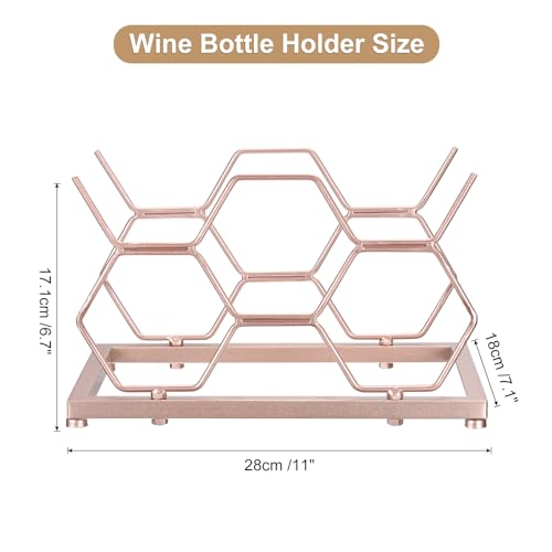 uxcell - اوكسيل رف مشروبات لسطح الطاولة، حامل زجاجات النبيذ لسطح الطاولة يتسع لما يصل إلى 5 زجاجات قياسية، رف نبيذ سداسي قائم بذاته لخزانة بار قبو النبيذ، ذهبي وردي
