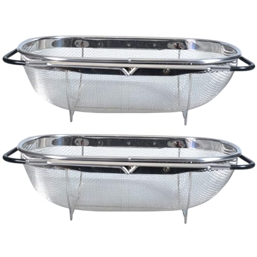 UXPEYIC - 2 Pack Over the Sink Colander, 6 Quart Stainless Steel Fine Mesh Oval Strainer Basket with Expandable Rubber Grip Handles for Kitchen Strain, Drain, Rinse Fruits, Vegetables