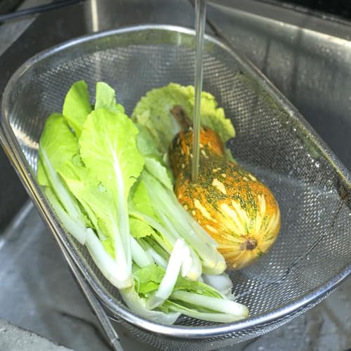- 【Multiple Uses】 : Multifunctional basket strainer can handle a variety of kitchen tasks. Can be used for straining and rinsing pasta, grains, fruits and vegetables. Also great for quick drying dishes.
