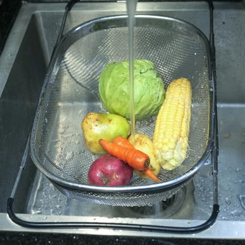 - 【Food Grade Stainless Steel】 : Our over the sink colander is made of 18/8 stainless steel that is BPA free, lead free, durable and last for a long time. It is also dishwasher safe, ensuring effortless cleaning and maintenance.
