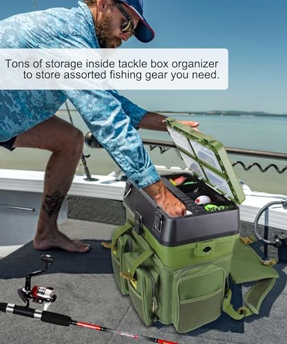 Uxwuy - Tackle Box Large Fishing Tackle Box with Backpack 3 Layer Tackle Box Organizers and Storage 14.6 X 9 X 14.7in Large Tacklebox for Fishing (Dark Green)