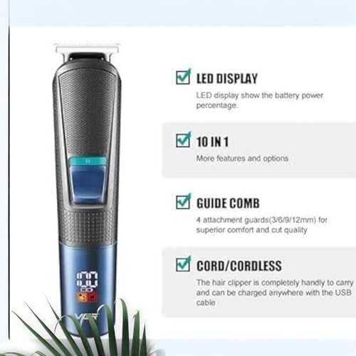 Generic - مجموعة منتجات الحلاقة الاحترافية V-108 مكونة من 10 قطع في 1، تتضمن 5 رؤوس قابلة للتبديل، ووقت تشغيل 120 دقيقة
