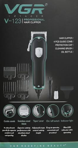 Generic - ماكينة حلاقة الشعر واللحية V-123 للرجال – شفرات حادة من الفولاذ المقاوم للصدأ – محرك قوي منخفض الضوضاء – بطارية ليثيوم بشحن سريع عبر USB – تصميم عصري مريح للاستخدام اليومي
