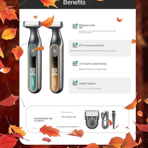 Generic - ماكينة الحلاقة و النعيم V-360 مقاوم للماء بقوة IPX6 رأس للتدرجج من 0.1 ملى إلى 9 مللي للتناعم و السفوف و للمناطق الحساسة