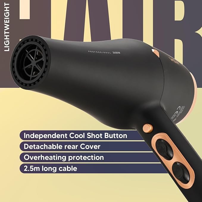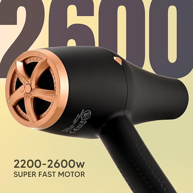 - يوفر محرك تدفق هواء سريع وكفاءة في التجفيف، مما يساهم في تقليل وقت التصفيف بشكل ملحوظ.