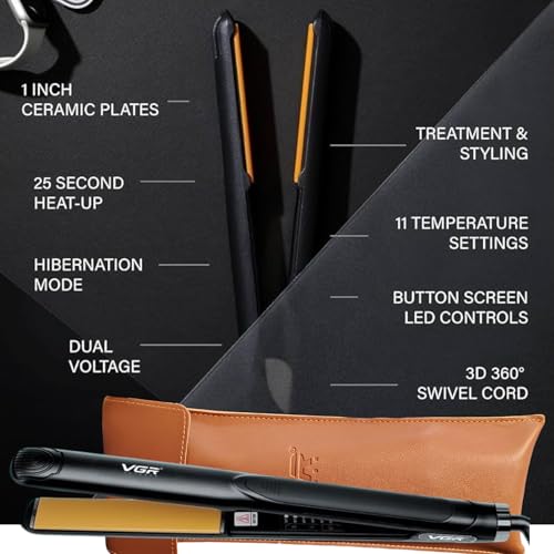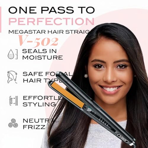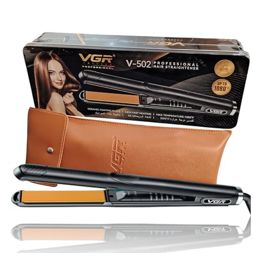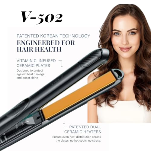 Generic - V-502 Professional Hair Straightener, Ceramic Coating, 1080°F Max Temperature, 5 Heat Settings, Black