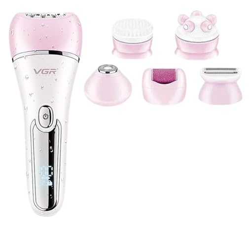 Generic - جهاز إزالة الشعر V-733 - مجموعة احترافية 6 في 1 لإزالة الشعر للنساء، شاشة ال اي دي، وقت تشغيل 90 دقيقة، بطارية ليثيوم 600 مللي امبير/ساعة مقاومة للماء (وردي)
