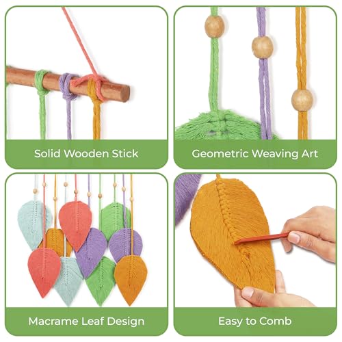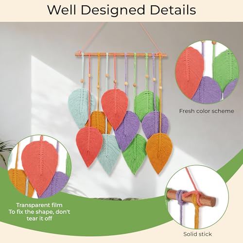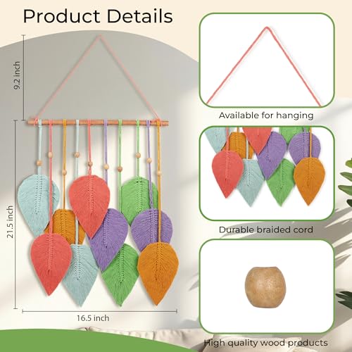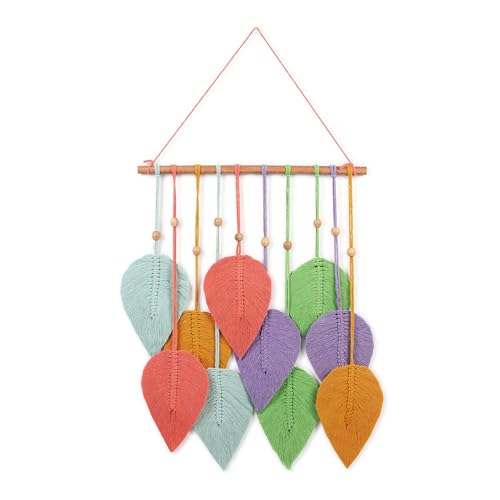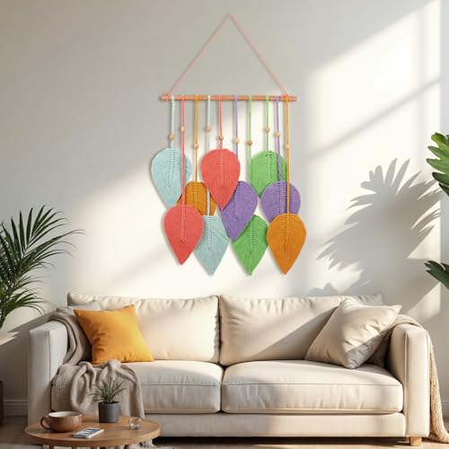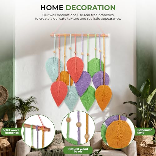 V BOHO - زينة حائط مصنوعة يدويًا من المكرمية على شكل ورقة ديكور حائط مستدام للمنزل والمكتب ملونة لتزيين غرفة المعيشة أو غرفة النوم، من في بوهو