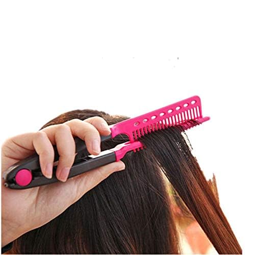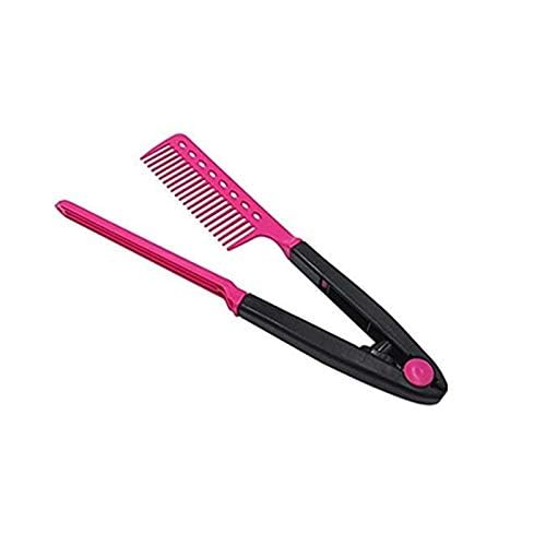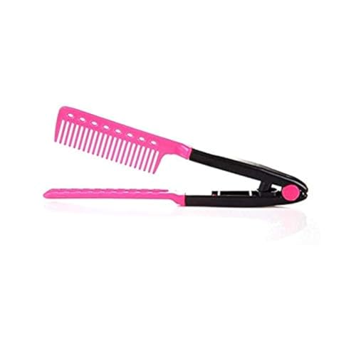 غير معروف - مشط سهل على شكل حرف V | اداة فرد الشعر لخصلات الشعر المستقيمة بدون ضغوط | زهري فاقع