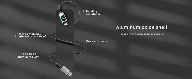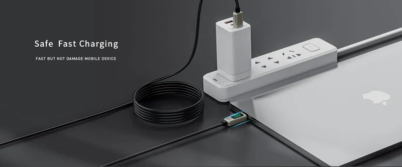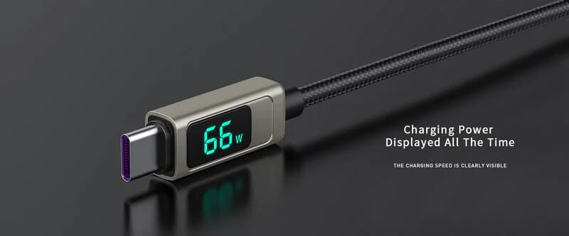 - 【VISIBLE CHARGE STATE】 Features a built-in digital display (LED) that displays the charging power (watts) in real-time, allowing you to monitor whether your device is charging quickly. Durable 120cm (1.2m) nylon braided outer cable has tangle resistant and has passed more than 10,000 bending tests, while the aluminum alloy construction ensures heat dissipation.