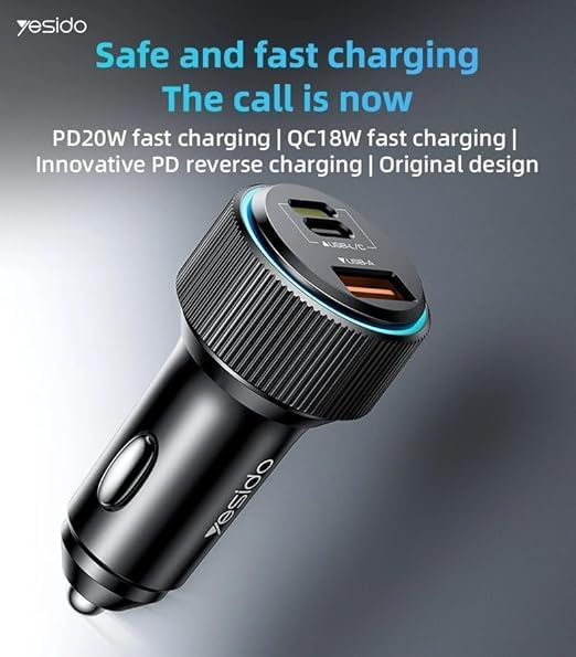 V Volt - V Volt 38W Fast Car Charger – PD20W & QC18W Dual Ports, Innovative Fast Charging, Multiple Protection, Circular Light Indicator, Compatible with All Vehicles