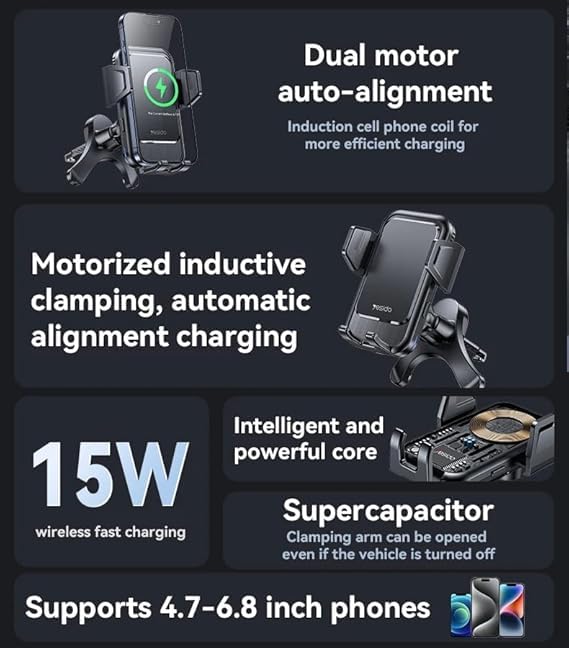 - قفل تلقائي بمحرك ذكي: يتميز بتقنية المحاذاة التلقائية التي تضمن تثبيت هاتفك بدقة وسرعة، مما يوفر أقصى درجات الراحة أثناء القيادة.