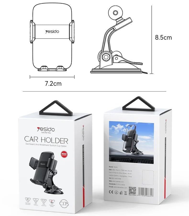 - [قاعدة شفط قوية لتثبيت ثابت]: يأتي الحامل بقاعدة شفط متينة تلتصق بإحكام على التابلوه أو الزجاج الأمامي، مما يمنحك تثبيتًا فائق الثبات حتى في القيادة على الطرق غير المستوية. يوفر أمانًا كاملاً لهاتفك أثناء الرحلات الطويلة أو اليومية.