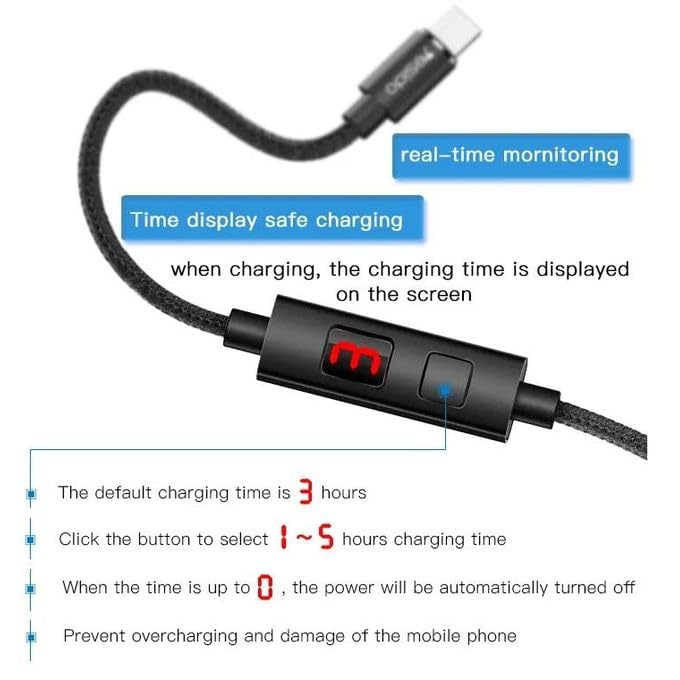 - [Timer Technology]: CA46 cable features built-in timer with innovative digital display that clearly display the charging time, which helps you manage power consumption efficiently and prevent overcharging. This smart feature maintains longer battery life and gives you total peace of mind while charging whether at home, on the go, and daily travel.