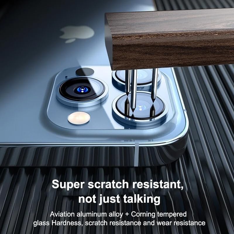 - Aluminum metal frame camera protector made of 9H tempered glass hardness protects camera lens from damage and scratches