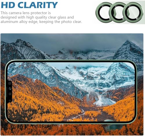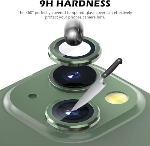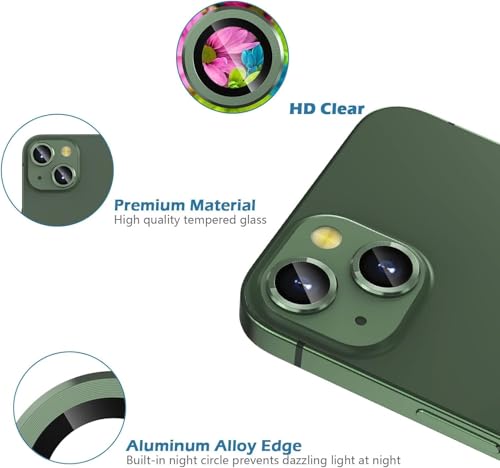 V Volt - V Volt Camera Lens Protector Tempered Glass Metal 9H Hardness Metal Camera Ring Scratch Resistant [Wear Resistant] Shockproof Compatible with iPhone 13/13Mini (Green)