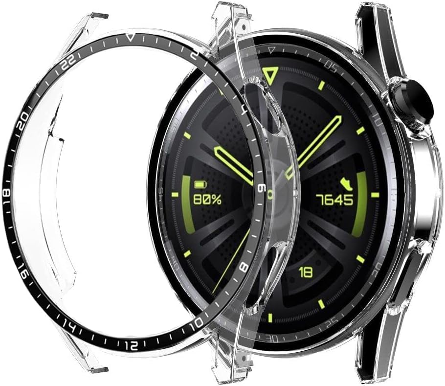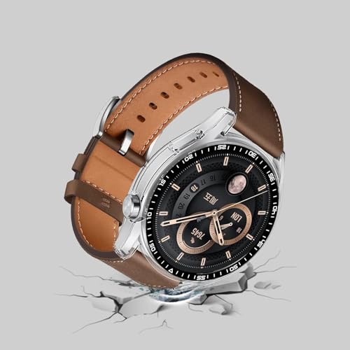 V Volt - جراب حماية من V Volt متوافق مع ساعة هواوي ووتش GT3 مقاس 46ملم فائق النحافة مع إطار زجاجي مقاوم للصدمات وحماية كاملة للشاشة من البولي كربونات - تصميم أنيق وشفاف (شفاف)