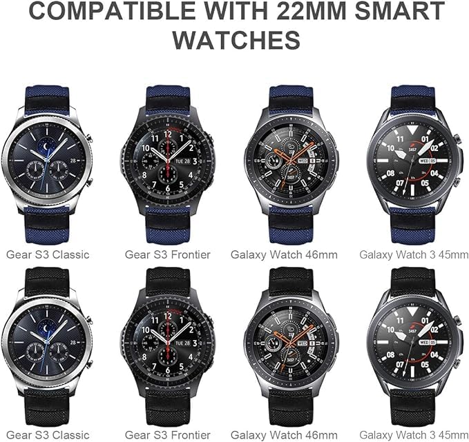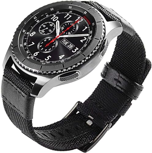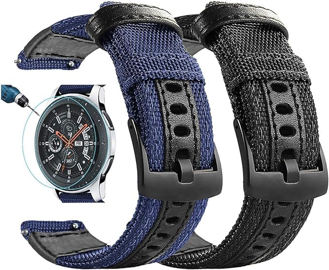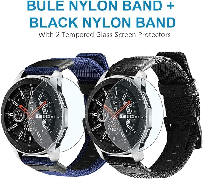 V Volt - أساور متوافقة مع ساعة جالاكسي ووتش 46 ملم من في فولت، سوار جلد نايلون 22 ملم متوافق لساعة جير S3 (عبوة من قطعتين) مع شاشتي حماية