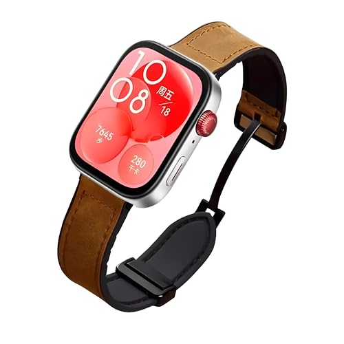 V Volt - سوار قياسي من في فولت متوافق مع ساعة هواوي ووتش فت 3، مصنوع من السيليكون والجلد المنسوج بإغلاق مغناطيسي للجنسين