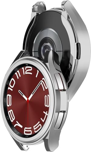 V Volt - V VOLT Compatible with Samsung Galaxy Watch 6 Classic 43mm Case, Soft TPU Bumper Protective Cover [Anti-Scratch] Ultra Thin and Light Smart Watch Protector (Silver)