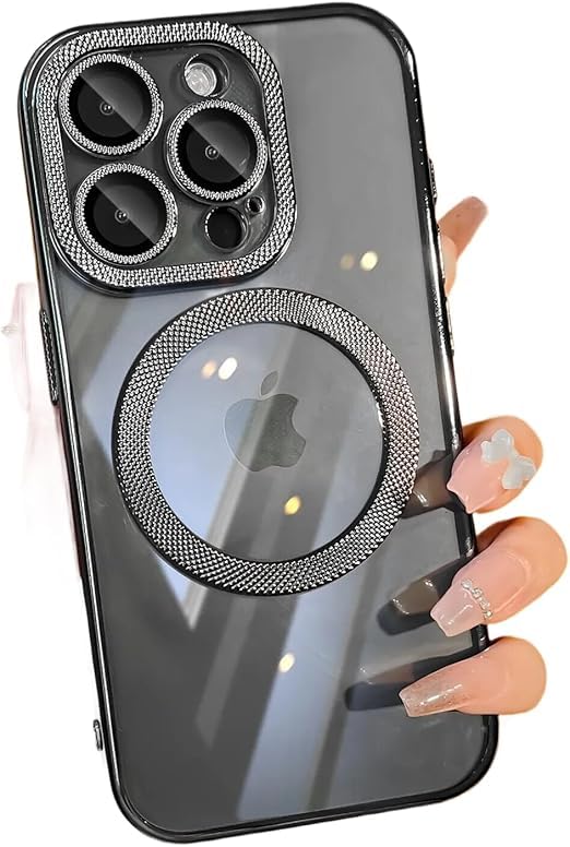 V Volt - V Volt Crystal Clear Case Compatible with iPhone 15 pro max, Support Magnetic Charging, Shockproof, Slim Stylish, Luxury Protective Cover for Women Girls (Black)