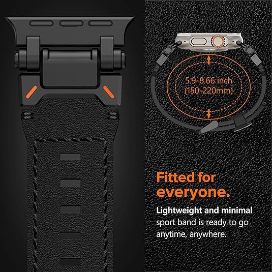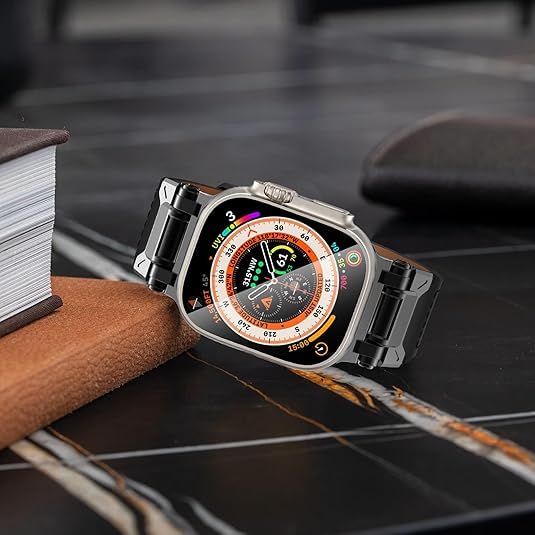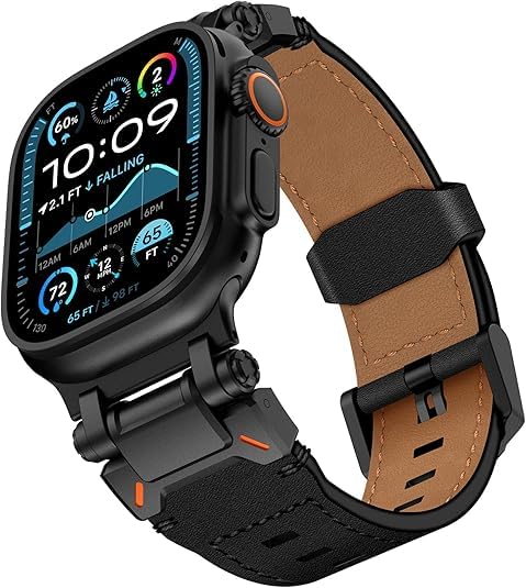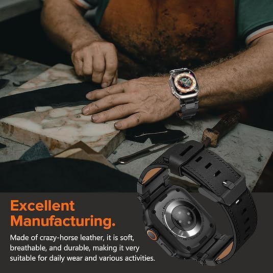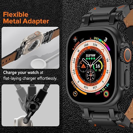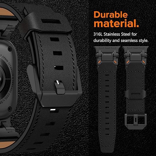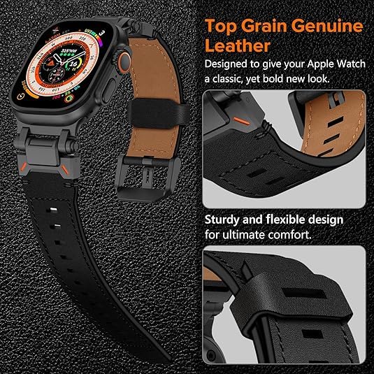 V Volt - سوار ساعة جلدي من V VOLT متوافق مع اي ووتش سيريس 1/2/3/4/5/6/7/8/9/10 - Ultra/Ultra 2/SE مقاس 42/44/45/46/49 ملم للرجال، حزام مصنوع من الجلد الطبيعي مع وصلات من التيتانيوم.