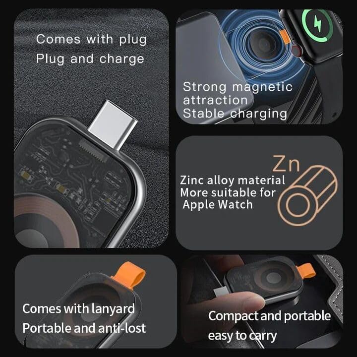 V Volt - شاحن ساعة مغناطيسي من في فولت - قاعدة شحن محمولة مدمجة 3.5 وات من النوع سي متوافقة مع ساعة اي ووتش مع امتصاص مغناطيسي قوي