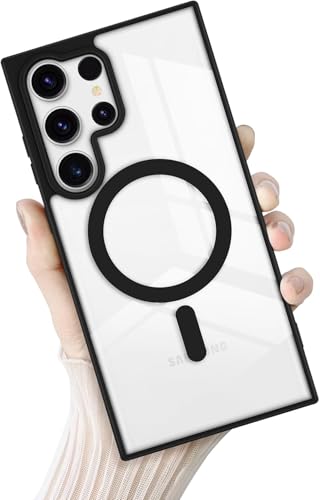 V Volt - جراب حماية من البولي كربونات بإطار سيليكون من في فولت، يدعم الشحن المغناطيسي بتصميم شفاف أنيق وحماية فائقة متوافق مع موبايل سامسونج جالاكسي S22 الترا (أسود)