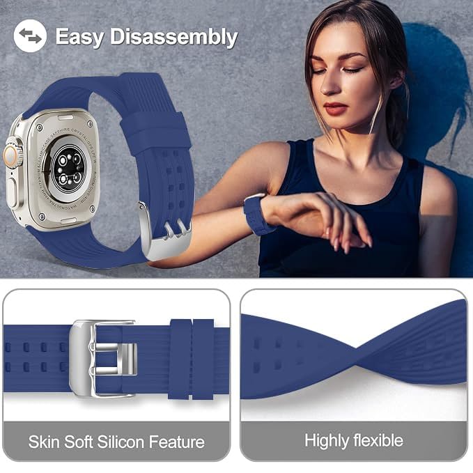 V Volt - V VOLT Sport Watch Band Compatible with Apple Watch Ultra/Ultra 2-49mm 45mm 42mm Men, Soft Silicone Strap with Stainless Steel Adapter for iWatch Series 9 8 7 6 5 4 3 2 1 SE