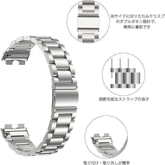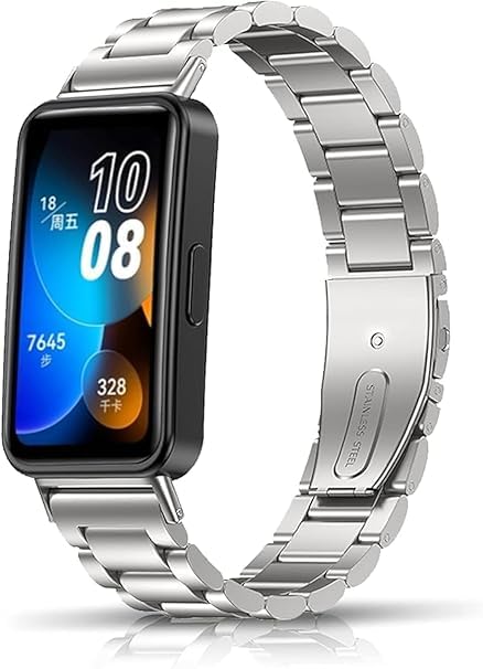 V Volt - V Volt Stylish Stainless Steel Metal Strap - Compatible with Huawei Band 8 / Honor Band 8 Adjustable Strap Fashion Design Smart Watch