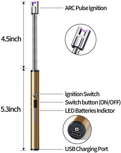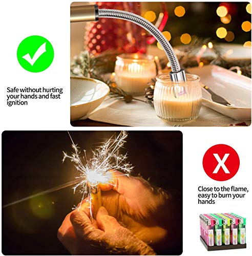 - SAFTY DESIGN: For security reasons, lighter has specially multiple protections, if the heating time is too long, the lighter will automatically cut off the power. What’s more, a safety lock design to keep the children away from the fire. Long and flexible soft head enable you to maintain a safe distance from the flame.