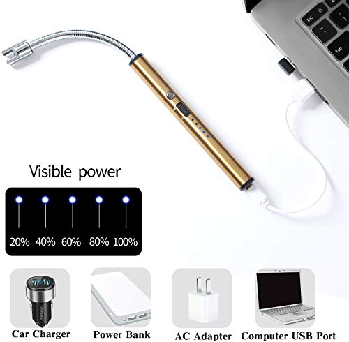 V2COM - V2COM Long Lighter, Rechargeable USB Arc Lighter with LED Battery Display Flexible Neck Lighter for Candles Grill Gas Stoves Camping Barbecue