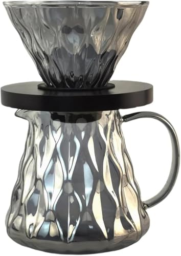 طقم تحضير القهوة الزجاجي V60 ، 600 مل - طقم تحضير القهوة الكريستالي الاسود الشفاف، اداة تقديم قهوة مقاومة للحرارة مع قمع V60 مقاس 02 - مجموعة تقطير القهوة لـ 1-4 اكواب قهوة