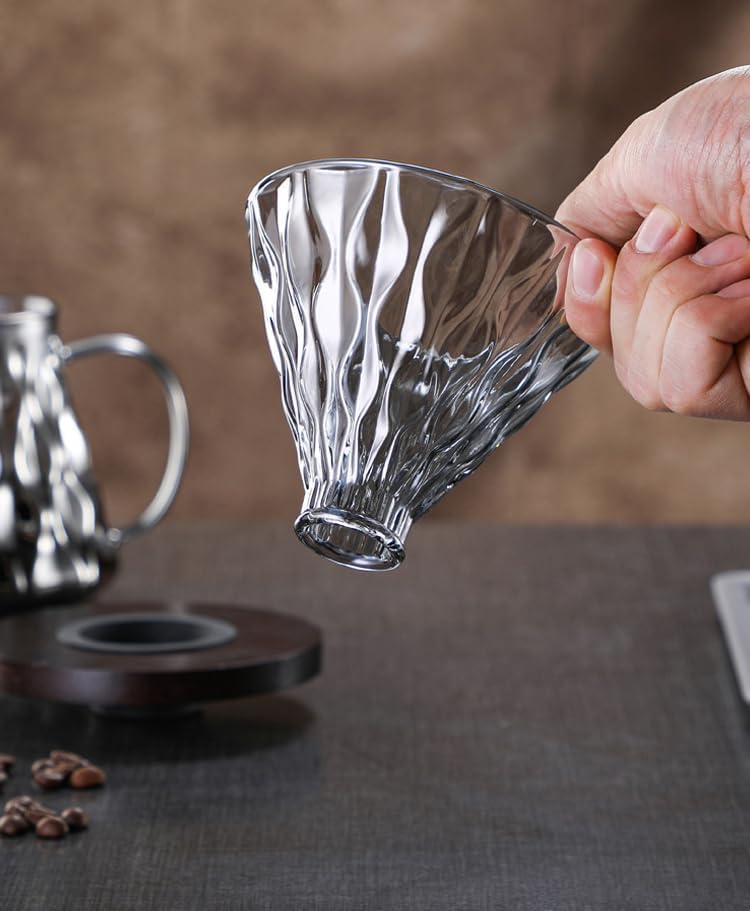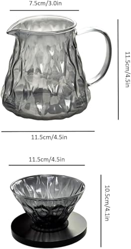 - طقم تحضير القهوة الزجاجي V60 , 600 مل - طقم تحضير القهوة الكريستالي الاسود الشفاف، اداة تقديم قهوة مقاومة للحرارة مع قمع V60 مقاس 02 - مجموعة تقطير القهوة لـ 1-4 اكواب قهوة