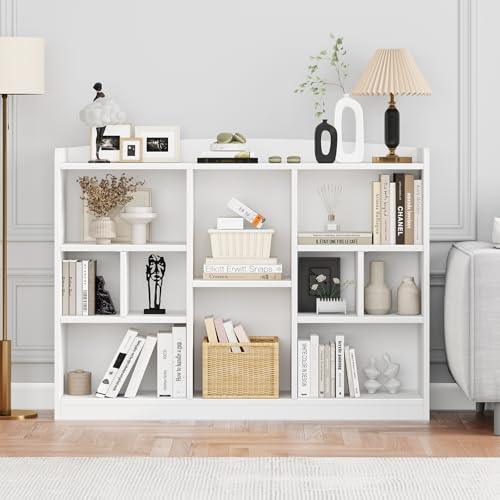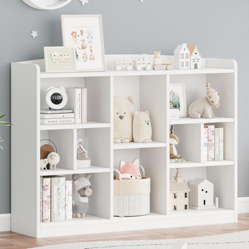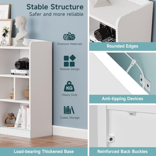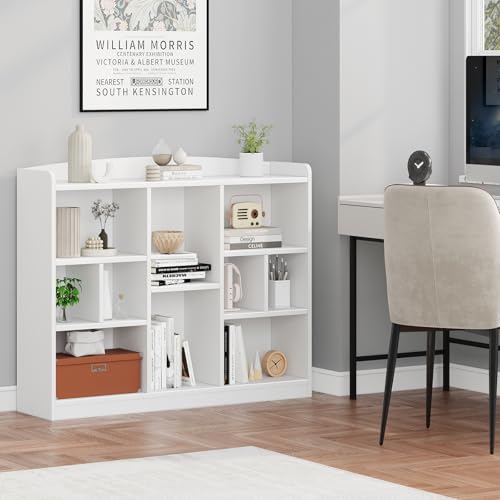 Vabches - Vabches 10 Cube Storage Organizer Bookshelf with Adjustable Shelf, Kids Cube Bookcase & Toy Storage Organizer, Wood Cube Book Display Shelf for Living Room Bedroom, Round Guardrail+Thicked Base, White