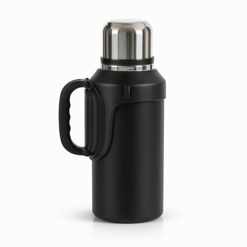 Generic - زجاجة مفرغة من الهواء سعة 1.2 لتر معزولة من الفولاذ المقاوم للصدأ مع مقبض وسوار، زجاجة مياه ساخنة وباردة مزدوجة الجدار للسفر والتخييم والتنزه والجيم والاستخدام المكتبي