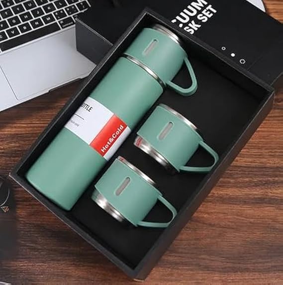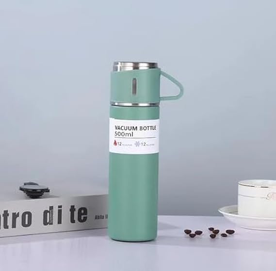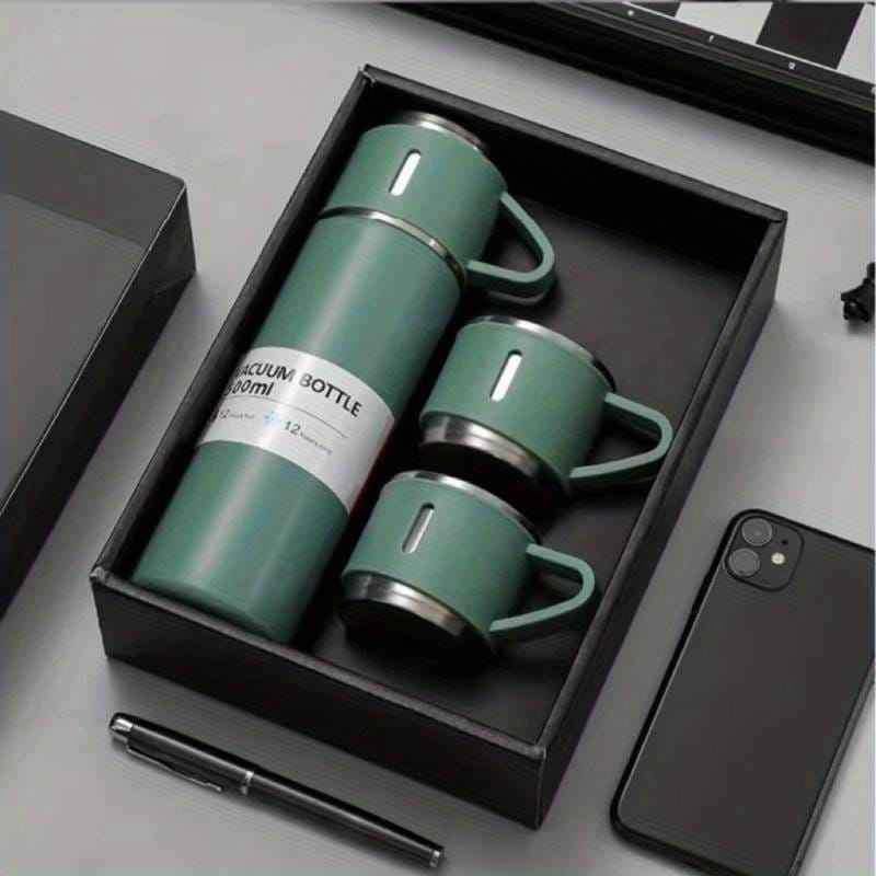 Generic - Vacuum Flask Gift Insulated with 3 Small Cups for Hot and Cold Drinks, 500 ml