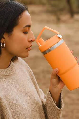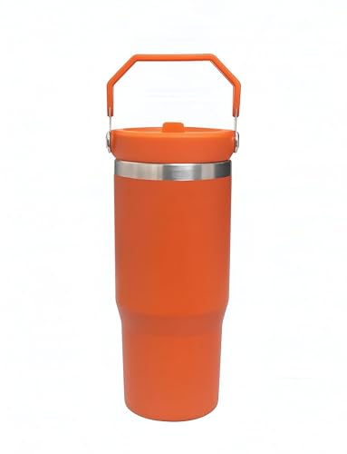 Generic - Vacuum Insulated Bottle - Stainless steel tumbler with ergonomic handle and straw lid, ideal for hot or cold beverages, durable orange finish, 890ml volume