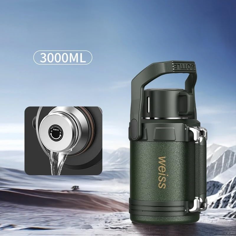 Generic - Vacuum Insulated Stainless Steel Water Bottle 316 Steel Large Capacity Travel Tumbler for Hot and Cold Drinks Camping Office Home, 3 L Capacity, F-1523 (Army Green)