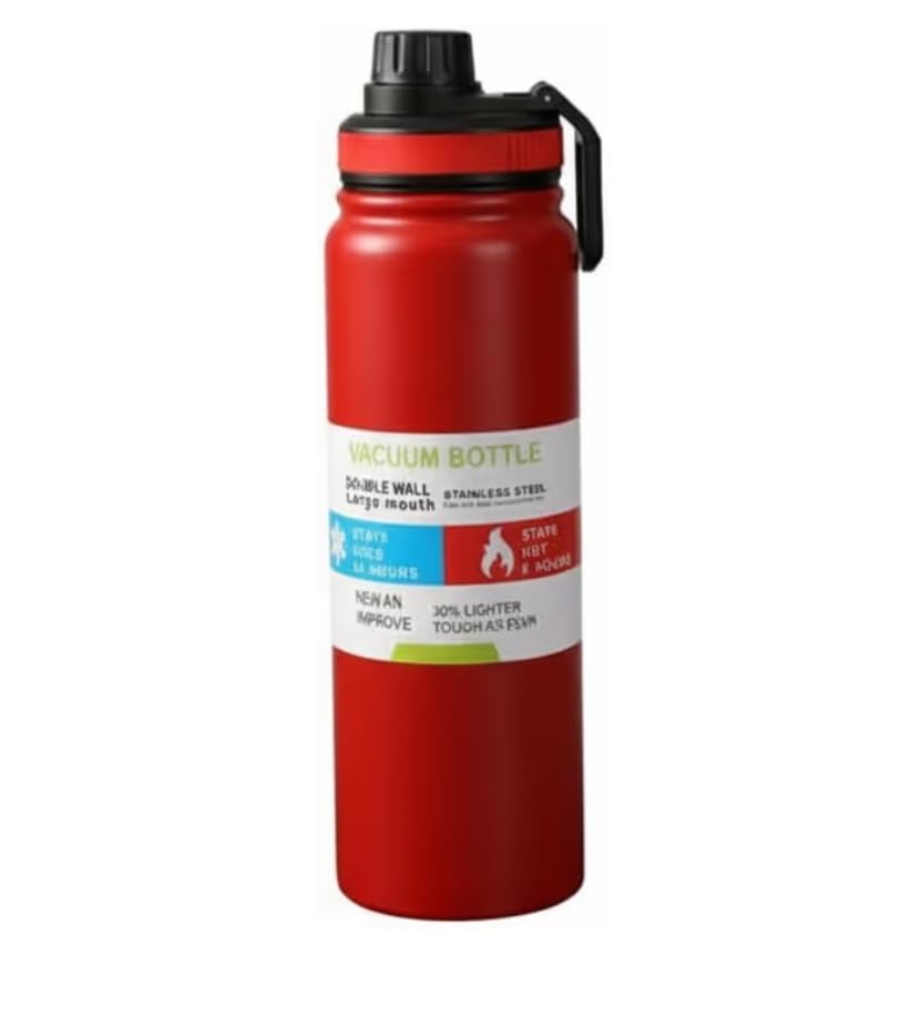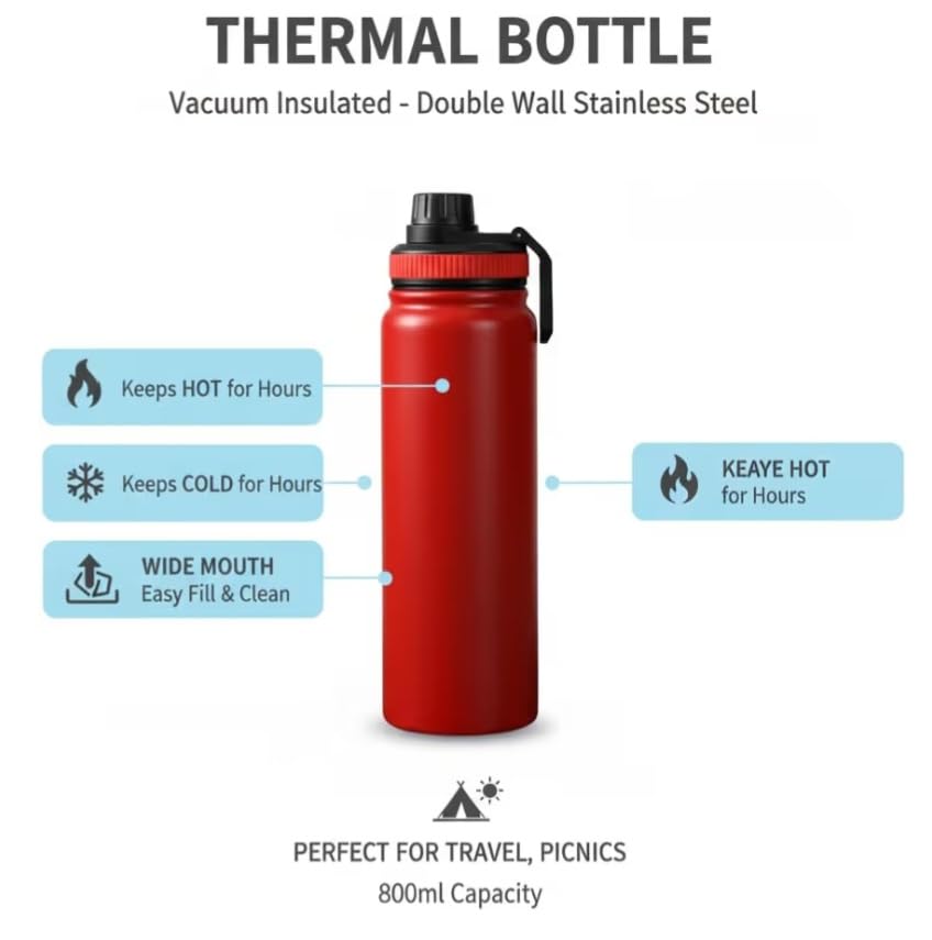 Generic - Vacuum Insulated Thermal Bottle, Double Wall Stainless Steel, Wide Mouth, 800ml, Red, Keeps Hot and Cold for Hours, Perfect for Travel and Picnics