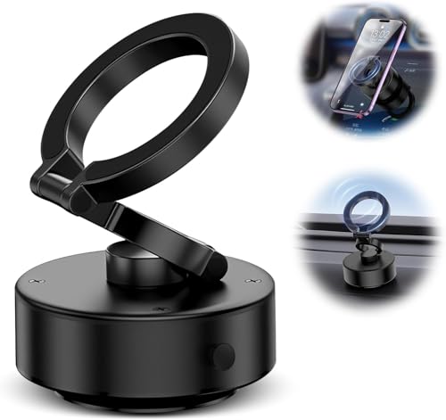 - MAGNETIC vacuum suction technology: Strong magnets provide a safe fit for your phone on smooth surfaces such as glass, mirrors and dashboard.