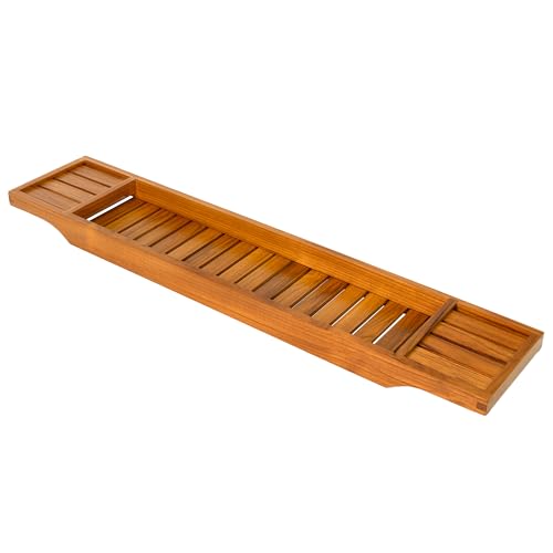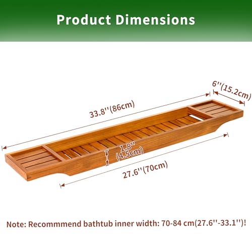 - تناسب معظم أحواض الاستحمام: يبلغ مقاس صينية حوض الاستحمام المصنوعة من خشب الساج 96 سم طول × 15 سم عرض × 46 سم ارتفاع.