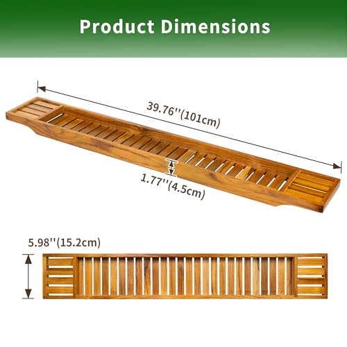 - Fit Most Bathtub: The size of our teak bathtub tray is 39.8"L x 6"W x 1.8"H