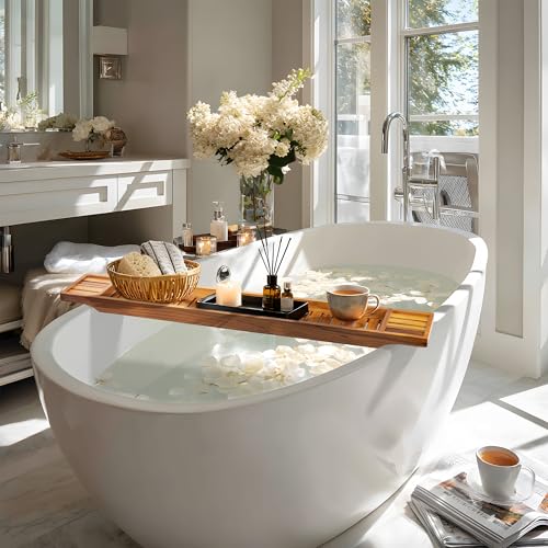 - Premium Material: This wooden bath tray is crafted from natural teak wood with a meticulous process; Elevate your bath experience with our teak bathtub tray